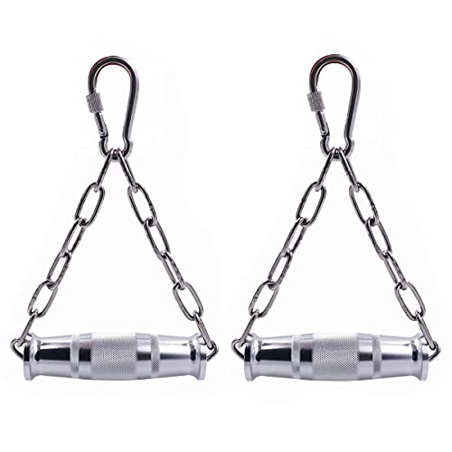 Heavy Duty Metal Gym Handles with Stainless Steel Chain for Cable Machine Attachments Rotating Bar Home Gym Workout Accessories (Color : 1 Pair) (1 Pair)
