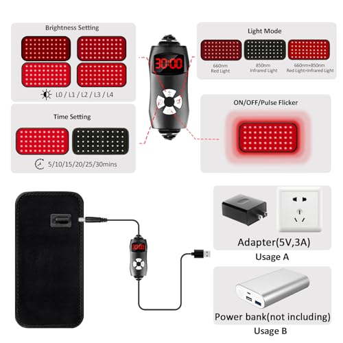 Specification: Red Light Therapy Belt, Infrared Light Therapy for Body, Wearable Wrap with Timer for Back Shoulder Waist Muscle Pain Relief, Improve Joint Inflammation, Red Light Therapy for Body