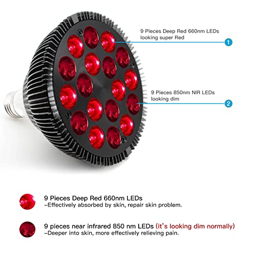 Benefits; Red light lamp deliver infrared heat to human body, the heat can toughen wound healing, tissue repair, reduce joint pain, and muscle recovery and can toughen blood circulation of the target areas, skin, joint, muscle, neck, shoulder and so on. We also providing 12 months warranty and 30-day satisfaction or return/refund guarantee, you probably have any question, please contact us.