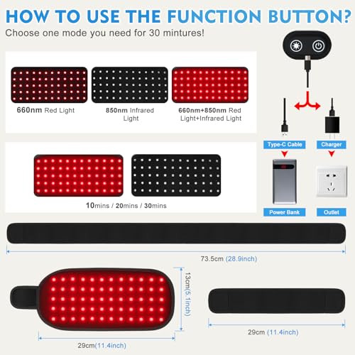 Specification: Red Light Therapy, Red Light Therapy for Body, Infrared Light Therapy for Shoulder Waist Muscle Pain Relief, Infrared Heating Pads, Led 660nm&850nm Red Light Therapy Belt Wrap (L)