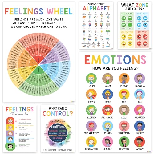 Create a safe and calming space to discuss feelings with our emotions chart for kids, feelings posters, and calm down corner supplies. Our calming corner items for kids include a feeling chart, mood meter poster, and calming art. Help children develop emotional regulation with our zones of regulation posters and feeling wheel chart. Perfect for classrooms, therapy offices, or anywhere mental health decor is needed.