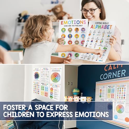 Specification: BEAWART 6 Calming Corner Classroom Posters, Feelings Wheel Chart & Emotions Poster For Kids, Calm Down Corner Supplies For Therapy Office Decor, Mental Health Wall Decorations For Preschool Teachers