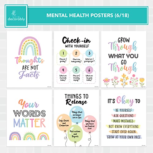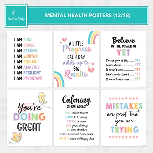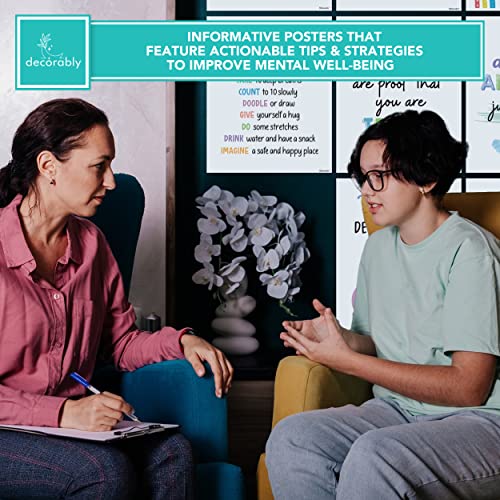 Decorably 18 Mental Health Posters for Office – 8x10in SEL Posters for Classroom Elementary, Mental Health Office Decor, Counseling Office Decor, School Counselor Office Decor, Therapy Posters
