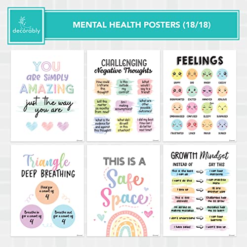 Specification: Decorably 18 Mental Health Posters for Office – 8x10in SEL Posters for Classroom Elementary, Mental Health Office Decor, Counseling Office Decor, School Counselor Office Decor, Therapy Posters