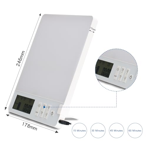 Specification: BAOMING Light Therapy Lamp 10000 Lux Brightness-UV Free,Blue Lighting Improve sleep quality,Whit Lighting Imitation of sunlight,Display,4 Periods Timer Function,5 Levels Brightness Adjustment, 1-Pack