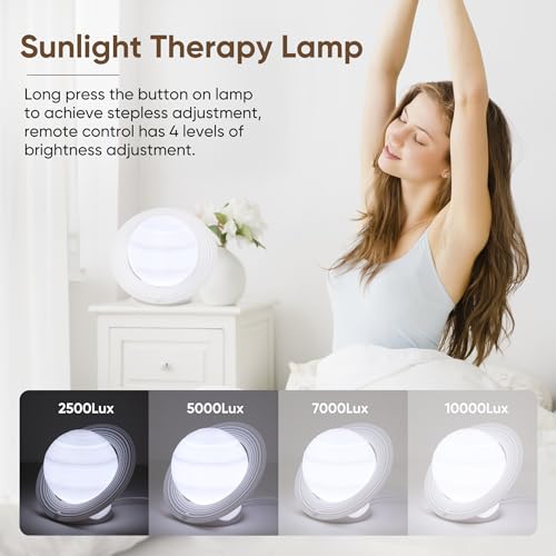 UV-Free Saturn light therapy lamp mimics natural light, and delivers up to 10,000 lux for effective and natural light, helping you energize, focus, and revitalize. Help you fight work fatigue, irregular circadian rhythm sleep, winter blues, and unhappy season.