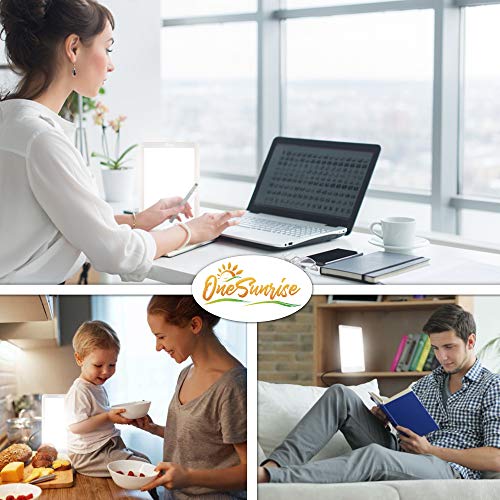 SunnyLight by OneSunrise! SUPER POWERFUL 32,000 lux intensity LED panel lamp with a large light surface area provides full spectrum light for a happy and healthy way of life. Compact tablet design fits into tight spaces and packs flat for maximum convenience and portability. PROMOTES HEALTHY SLEEP – works with your body clock to promote healthy sleep patterns, especially on rainy days. BOOST YOUR MOOD: Full spectrum light allow you to feel happy and awake all day! IMPROVE FOCUS: Full spectrum light helps your body to calm down, center of attention, and feel revitalized. If you live or work in a place where not enough natural light is to be had, a SunnyLight can help increase your intake of daylight. HEALTHY ENERGY: Natural spectrum sunlight helps fight fatigue and increases alertness. Bright daylight signals your body to wake up and deliver peak natural energy. DAYLIGHT BULB: Natural sun light is over 100 times brighter than regular indoor lighting. Our SunnyLight LED panel delivers The easiest level of additional portable, therapeutic bright white full spectrum sunlight to spice up your mood and energy on rainy days and promote wellness and healing. PERFECT INTENSITY: Light intensity of up to 32,000 lux mimics a bright sunny day. Set your ideal brightness for energy, wellness, skin care and general mood boost. Our SunnyLight natural spectrum, Protected, UV-free light can support your life in many ways!