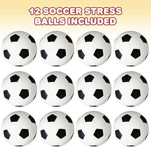 ArtCreativity Soccer Stress Relief Foam Balls for Kids, Set of 12, Sports Squeezable Anxiety Relief Balls, Idea, Party Favors, Goodie Bag Fillers for Boys and Girls