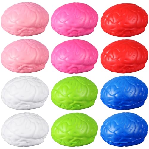 Specification: Leitee 12 Pcs Brain Stress Balls Bulk Halloween Brain Toys PU Hand Muscle Exercise Pressure Ball Funny Stress Relief Toy for Teens Adults Improving Grip Strength Object Recognition Props(Colorful)