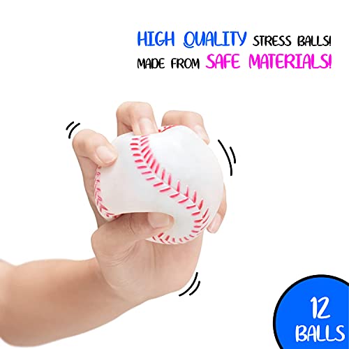 REALISTIC BASEBALL STRESS BALLS FOR ENDLESS FUN: Every unit comprises a dozen stress balls in classic baseball designs. These colorful balls are ideal for parties, stocking stuffers, and more.